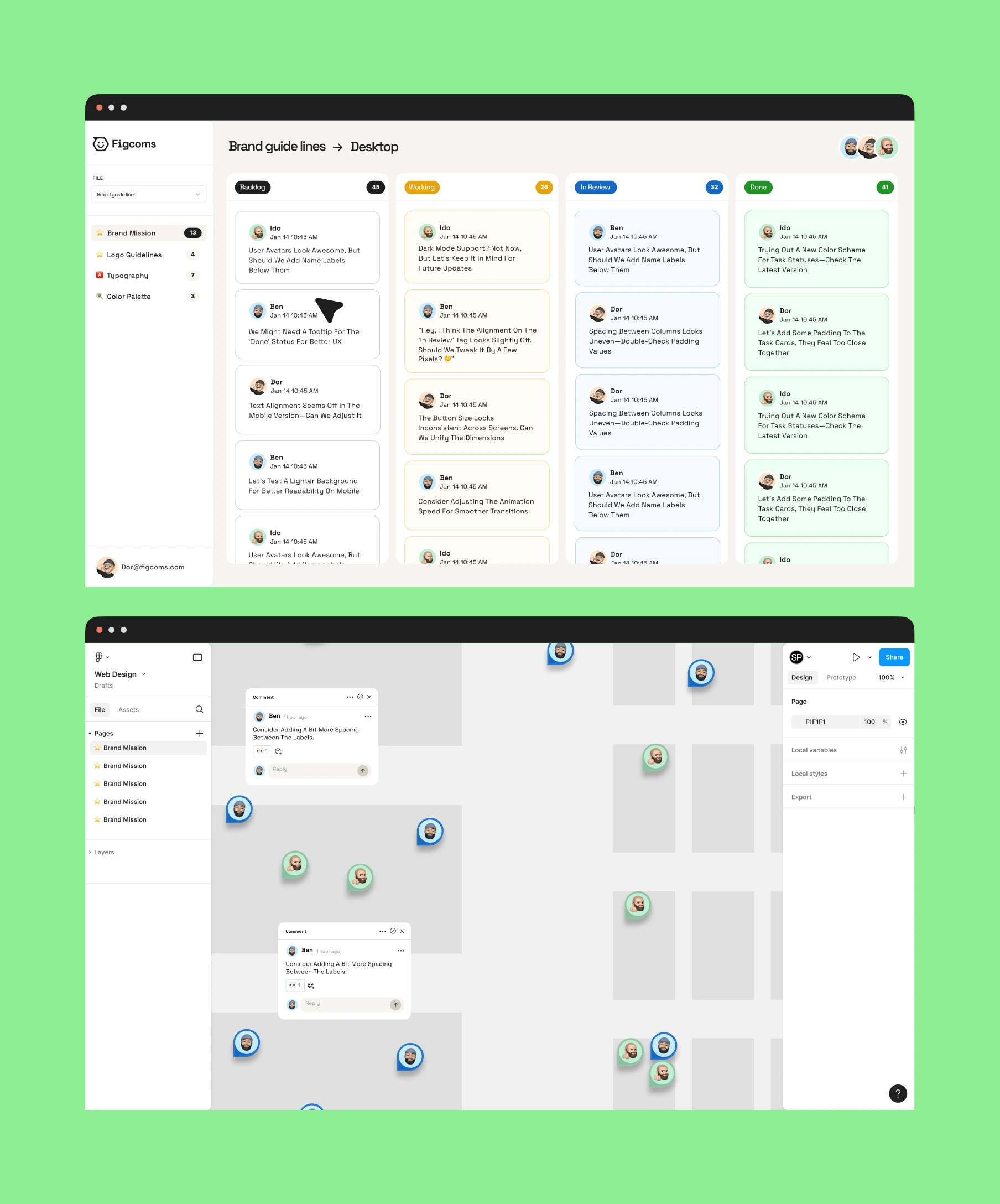 Every comment thread is mirrored perfectly between Figcoms and Figma, so you never lose track of what's been said, or what's next. No jumping tabs, no confusion just a seamless conversation, right where it matters.